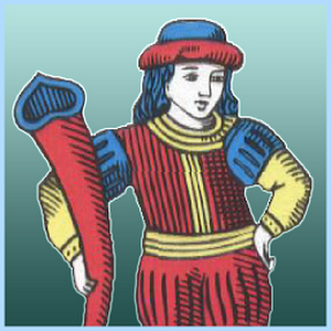 played with 40-card and has four suits :- 10 Copas (Tbaye9) - 10 Espadas (Syouf) - 10 Oros (D'hab) - 10 Bastos (Zrawétes) and are numbered 1-7, 10-12 in each suit.